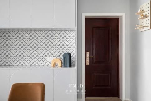 因為很多開發商安裝的門都是紅棕色的豬肝色,往往和整體家居風格不太搭,建議在不改變入戶門的情況下,改變門的顏色: