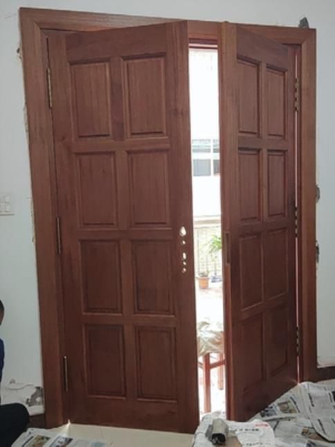 實(shí)木大門(mén)是能夠用木蠟油進(jìn)行涂裝的,這里就有用戶采辦回去自身施工的屋室實(shí)木大門(mén)涂裝案例。