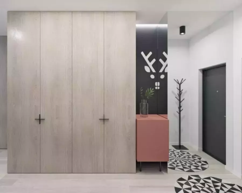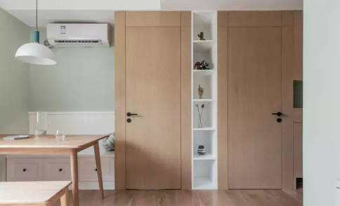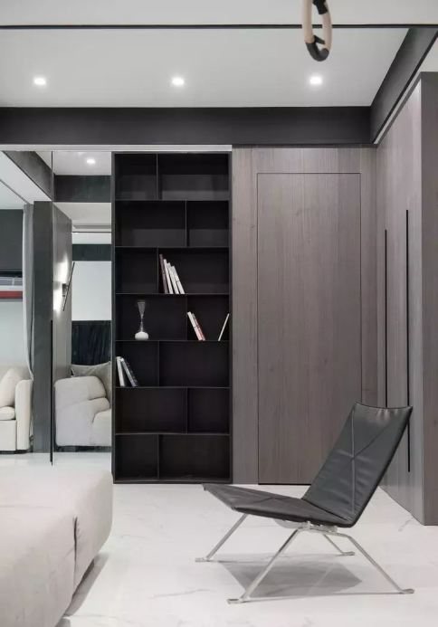 帶有衣帽柜、儲物柜等擁有貯藏性能的空間,是隱形門最常顯現的地區。將它們和門的色彩融為一體,在空間視覺上,起到了較好的協作成效。