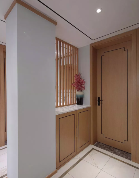 新中式木門大多采取實木成為原料,低檔的木門更會應用原木。除了視覺的享受,更可認知華夏博大的文化。