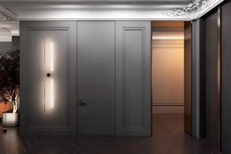 高級灰的護墻板配上好看的燈光設計,讓整個家自帶輕奢優雅感。