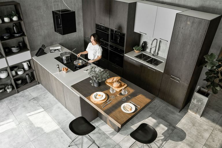 最近,中性灰色一直是許多家庭關(guān)注的焦點。它通常被歸類為太冷,但如果巧妙地協(xié)調(diào),灰色可以在你的廚房里創(chuàng)造奇跡。最重要的是,它與許多其他顏色完美搭配,可以成為完美的基礎(chǔ)。灰色適用于廚柜或臺面。